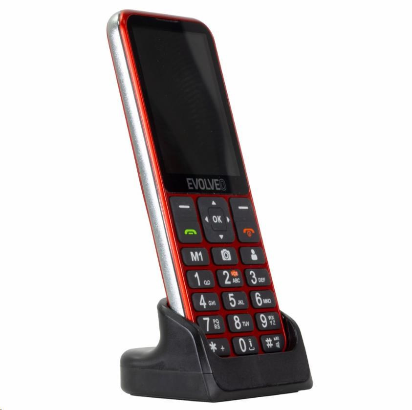 EVOLVEO EasyPhone LT, mobilní telefon pro seniory s nabíjecím stojánkem, červená