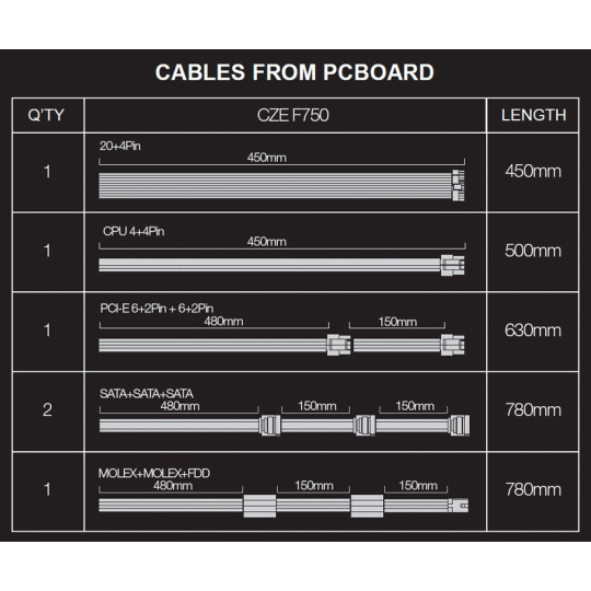 - PCI-E (6+2) +(6+2)pin (480+150 mm)