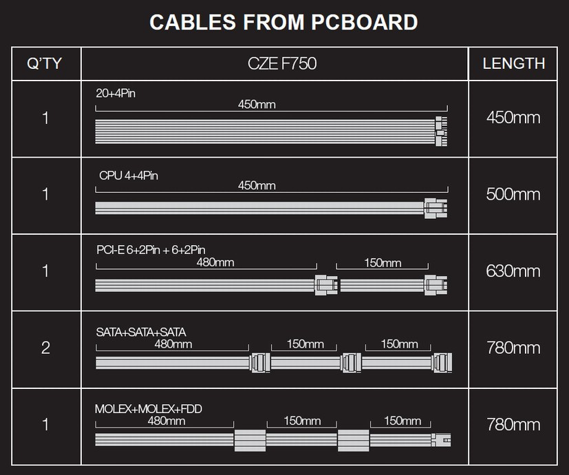 - CPU 4+4 pin (500 mm)