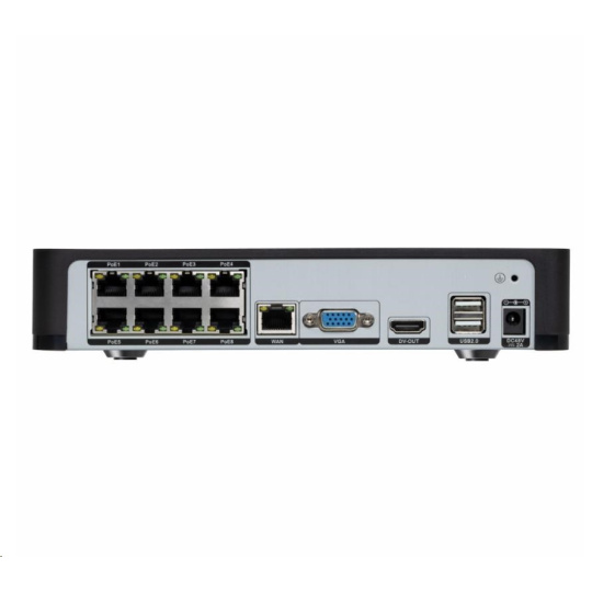 Konektory 1xWAN, 2× USB, VGA, HDMI, 8x LAN/POE port pre kamery