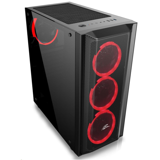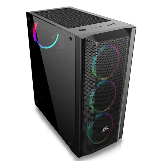 Gaming ATX midi tower s nainštalovanými 4x RGB rainbow 120 mm ventilátormi, ktoré sa ovládajú LED tlačidlom na hornej strane ovládacieho panelu. Predná mriežka cez celý predný kryt zabezpečuje účinné prúdenie vzduchu. Ľavá strana skrine obsahuje bočnicu z tvrdeného skla. Skriňa je určená pre základné dosky podporujúce platformy Intel aj AMD. Okrem formátu ATX je kompatibilný aj s formátmi Micro ATX a Mini ITX. Napájací zdroj je umiestnený v spodnej časti skrine. Spodná mriežka je vybavená výsuvným prachovým filtrom, horný prachový filter je pripevnený magnetmi a je odnímateľný.