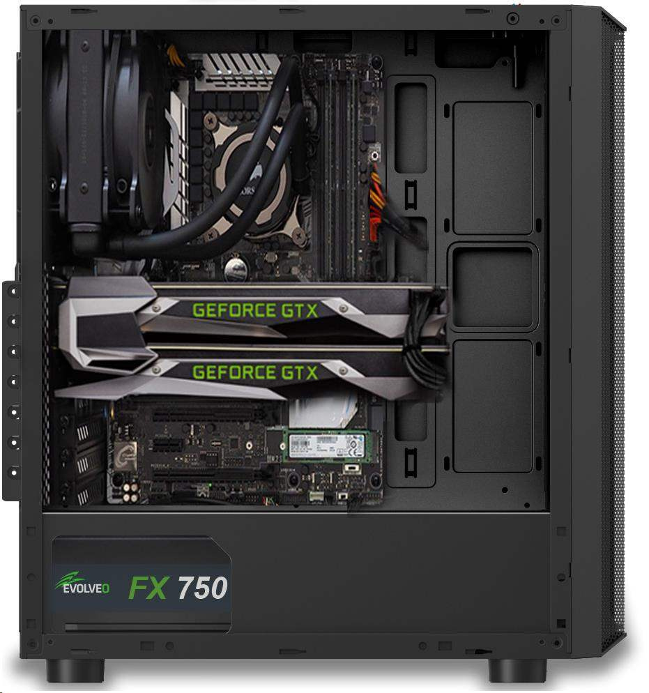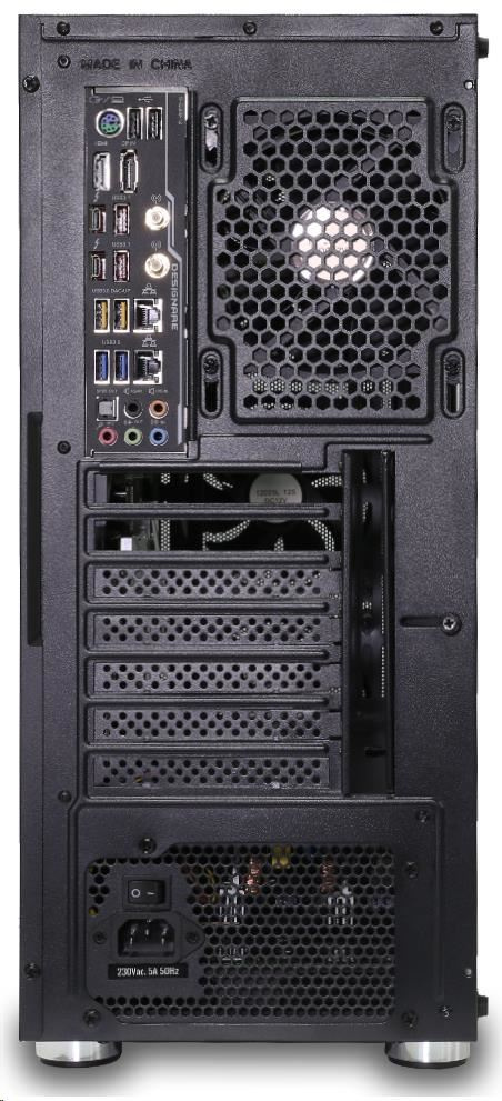 Gaming ATX midi tower s nainštalovanými 4x RGB rainbow 120 mm ventilátormi, ktoré sa ovládajú LED tlačidlom na hornej strane ovládacieho panelu. Predná mriežka cez celý predný kryt zabezpečuje účinné prúdenie vzduchu. Ľavá strana skrine obsahuje bočnicu z tvrdeného skla. Skriňa je určená pre základné dosky podporujúce platformy Intel aj AMD. Okrem formátu ATX je kompatibilný aj s formátmi Micro ATX a Mini ITX. Napájací zdroj je umiestnený v spodnej časti skrine. Spodná mriežka je vybavená výsuvným prachovým filtrom, horný prachový filter je pripevnený magnetmi a je odnímateľný.
