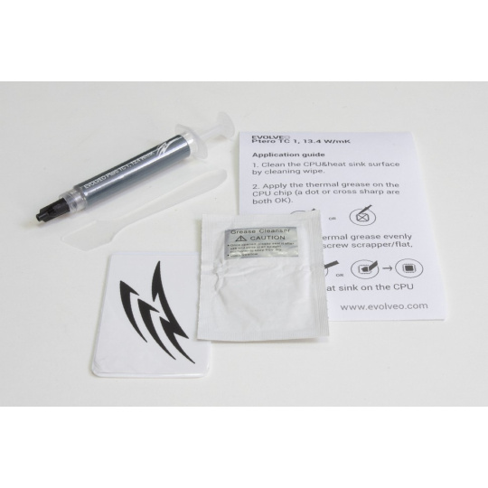 Vysokokvalitná teplovodivá pasta s vynikajúcou vodivosťou 13,4 W/mK, ktorá zaisťuje dokonalý odvod tepla z CPU alebo GPU. Vďaka tomu je pasta vhodná aj na pretaktovanie. Teplovodivá pasta je na báze silikónu, takže je elektricky nevodivá bez rizika skratu a bezpečná na použitie so všetkými typmi chladičov. účinnosť sa časom neznižuje a dokáže si udržať svoju vodivosť a prevádzkové vlastnosti až 8 rokov.