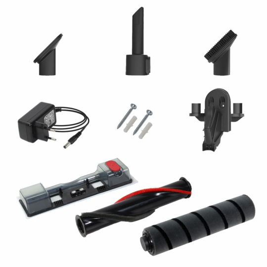 Jednoduchým odpojením vysávacej hubice a vysávacej trubice získate ručný vysávač, ktorý využijete na ďalšie upratovanie. Štetcová hubica je vhodná na upratovanie ťažko dostupných miest, štetinkový kartáč na šetrné odstránenie prachu zo žalúzií, kníh alebo klávesnice a hubica na čalúnenie nábytku.