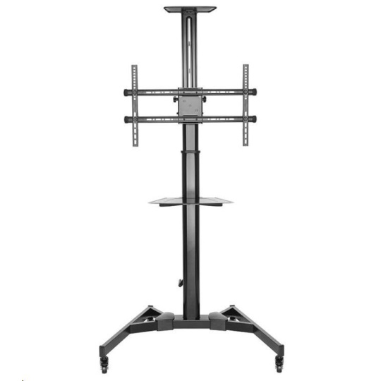 Exkluzívny mobilný stojan na televíziu Fiber Novelty FN5000 Televízny stojan vynikajúcej kvality a unikátnej konštrukcie, ktorá umožňuje plnú nastaviteľnosť polohy TV Veľmi pekný televízny stojan s unikátnou konštrukciou, vďaka ktorej veľmi ľahko nastavíte výšku televízora aj náklon, držiak má funkciu pivot, vďaka ktorej môžete dat obrazovku klasicky na šírku (horizontálne) alebo aj na výšku (vertikálne). Podstavec stojanu je osadený 4 kvalitnými pojazdovými kolieskami s brzdou, vďaka ktorým je stojan mobilný a ľahko manipulovateľný. Stojan sa dodáva vrátane príslušenstva - univerzálny držiak na televízory alebo monitory s uhlopriečkou 37-70", podporuje VESA štandard 200x200-600x400, poličkou na príslušenstvo a hornou poličkou na kameru alebo projektor. Obe poličky sú voliteľným príslušenstvom - na stojan ich môžete alebo nemusíte umiestniť. Nosnosť stojanu je 50kg, je veľmi stabilný a bezpečný. Vhodný na využitie na konferenciách, výstavách, prezentáciách, v kanceláriách, čakárňach, recepciách aj v domácnostiach. Farebné prevedenie čierne, záruka 3 roky. Exkluzívny stojan na televíziu alebo monitor, nastavenie výšky pomocou kliky bez náradia, nastavenie sklonu, funkcia pivot, polička na A/V a polička na kameru, stabilný, bezpečný, TOP kvalita - Fiber Novelty FN5000 Technické údaje: nosnosť 50kg podporuje VESA štandardy 200x200 až 600x400 univerzálny držiak na zavesenie TV alebo monitora s uhlopriečkou 37-70" plynulé nastavovanie výšky obrazovky pomocou kliky výškové nastavenie pomocou kliky, bez náradia, 1175mm až 1575mm možnosť náklonu obrazovky +10° až -10° funkcia PIVOT - rotácia obrazovky pre nastavenie do horizontálnej alebo vertikálnej polohy polička na A/V príslušenstvo s nosnosťou 5kg (inštalácia nie je nutná) rozmery A/V police 430x335mm polička na kameru alebo projektor s nosnosťou 4kg (inštalácia nie je nutná) rozmery hornej poličky 285x150mm robustný podstavec zabezpečí výbornú stabilitu a bezpečnosť rozmery podstavca 910x683mm pojazdové kolieska s brzdou zabezpečia skvelú mobilitu systém na fixáciu kabeláže na zadnej strane stojanu veľmi pekný dizajn unikátny systém pre ľahké a rýchle nastavenie výšky pomocou kliky montážny materiál (univerzálna sada skrutiek, podložiek na zavesenie obrazovky) farebné prevedenie čierne záruka 3 roky Stojan FN5000 je dodávaný vrátane držiaka na zavesenie TV alebo monitora s podporou VESA štandardu: VESA 200x200 VESA 300x200 a 200x300 VESA 300x300 VESA 400x200 a 200x400 VESA 400x300 a 300x400 VESA 400x400 VESA 600x400