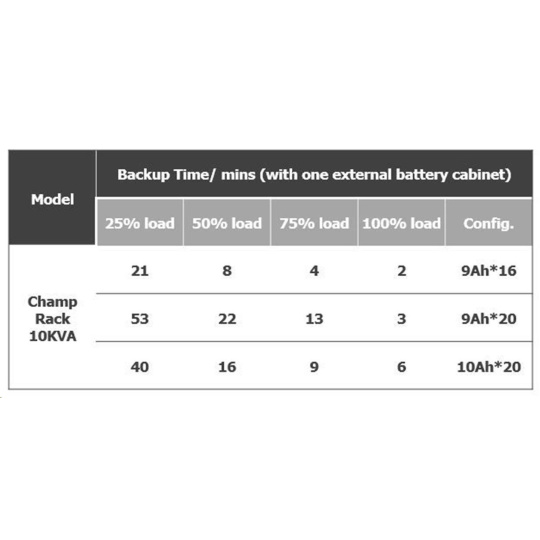 | Záložný čas - 1x batéria (20ks 9Ah) | |