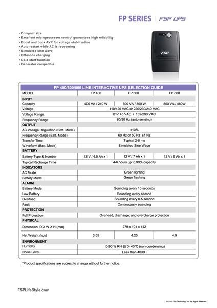 Fortron UPS FSP FP 800, 800 VA, interaktívna linka