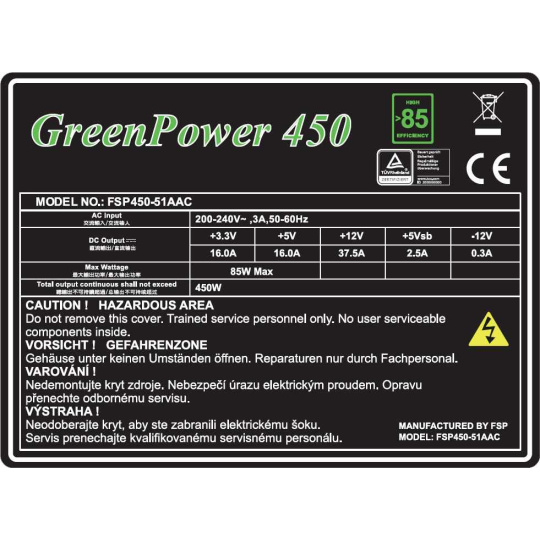 Napájací zdroj Fortron 450W GreenPower 450-51AAC, 80+ Bronze