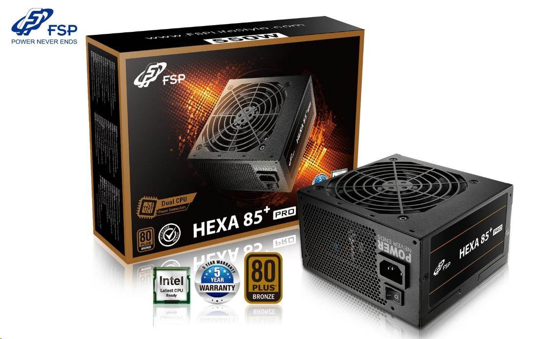 Séria HEXA 85+ PRO sú úplne nové napájacie zdroje ATX s certifikátom 80 PLUS® Bronze, s modulom DC-DC a jednokoľajovou konštrukciou +12 V, s japonskými kondenzátormi a tichým 120 mm ventilátorom, s kompletnou ochranou OCP, OVP, SCP, OPP, OTP a schválené podľa globálnych bezpečnostných predpisov. Séria HEXA 85+ PRO sa dodáva so štyrmi modelmi - 350 W, 450 W, 550 W a 650 W, ktoré spĺňajú rôzne potreby.
