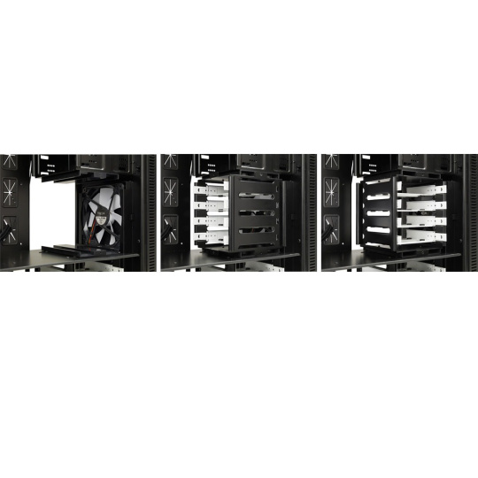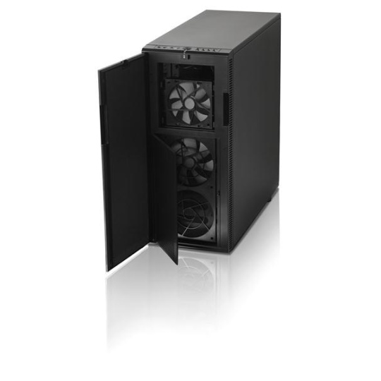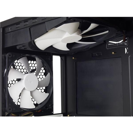 - Vpredu: 1 - hydraulický ložiskový 140 mm Silent Series R2 ventilátor, otáčky 1000 RPM (vrátane), 1 - 120/140 mm ventilátor (nie je súčasťou balenia)
