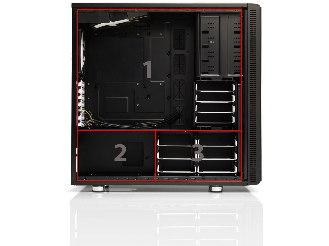 - Vpredu: 1 - hydraulický ložiskový 140 mm Silent Series R2 ventilátor, otáčky 1000 RPM (vrátane), 1 - 120/140 mm ventilátor (nie je súčasťou balenia)