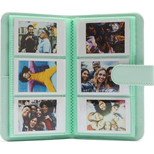 Fotoalbum je určené pre fotografie Instax Mini a dokáže pojmúť celkovo 108 záberov na 18 stranách.  Materiál: polyuretánová koža v piatich rôznych farbách.