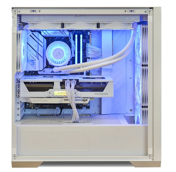 Na chladenie procesora som vybral jeden z najlepších vodných chladičov na trhu, navyše vo veľmi priaznivom pomere cena/kvalita. S týmto riešením od spoločnosti Arctic dosiahneme účinné a tiché chladenie a vetraniec čistý vzhľad celej zostavy, ktorý doplnia podsvietené ventilátory a základňa. Arctic tu skrátka dlhodobo vládne a ponúka kvalitu po všetkých stránkach, ktorú často získate za zlomok ceny iných AIO značiek. Niekto by mohol namietať, že vodné chladenie je pri úspornejších procesoroch Ryzen zbytočné, ale AIO sa do tejto krásnej skrinky naozaj hodí a dopĺňa skvelý vzhľad celej zostavy.
