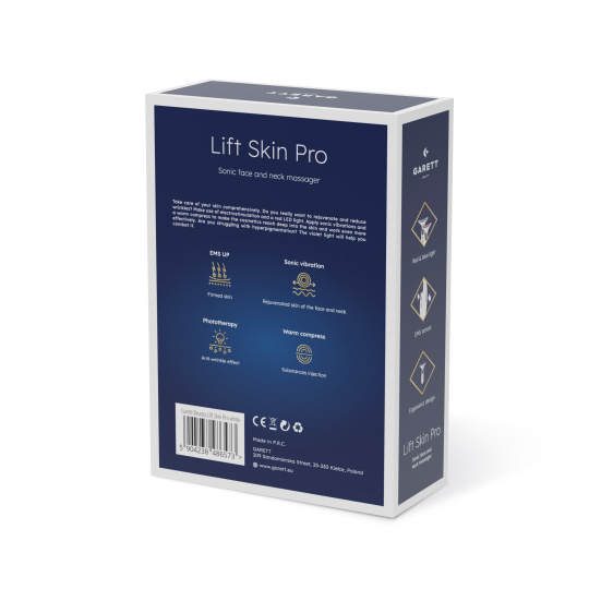 Doprajte svojej pleti zážitok z luxusnej starostlivosti s inovatívnym masážnym sonickým prístrojom pre tvár a krk. Garett Beauty Lift Skin Pro kombinuje niekoľko pokročilých technológií, ktoré poskytujú hĺbkovú výživu a viditeľné zlepšenie stavu pokožky. Jedinečný tvar zabezpečuje dokonalý pohyb pozdĺž krivky krku. Zistite, ako môžete bojovať proti známkam starnutia, zlepšiť elasticitu pokožky a užívať si zdravý, žiarivý vzhľad každý deň len s jedným zariadením. Moderné technológie prístroja premenia vašu každodennú starostlivosť na skutočné SPA v pohodlí vášho domova.