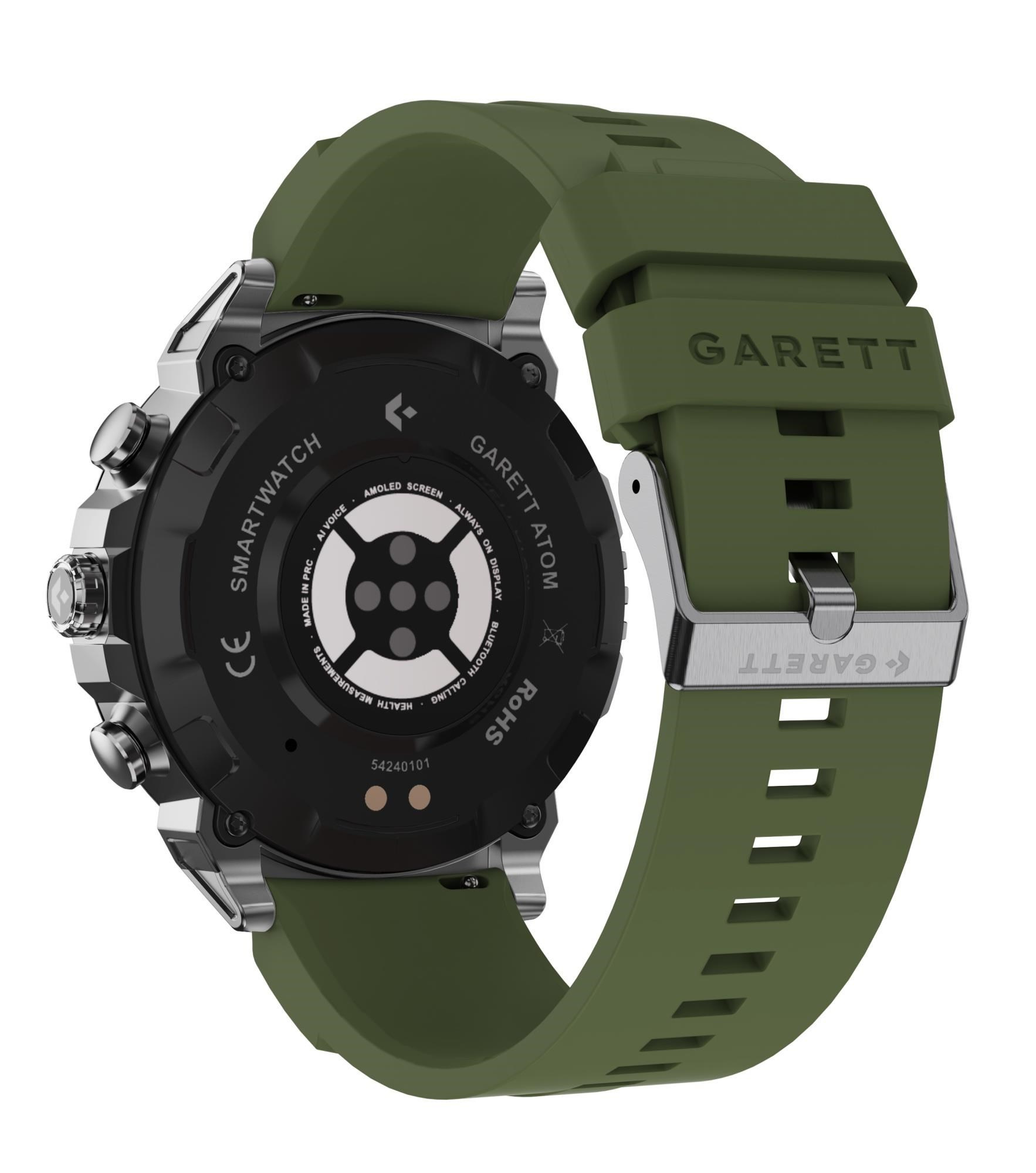 Hodinky Garett Atom majú 1,43" AMOLED displej s vysokým rozlíšením 466 × 466 px, ktorý zostáva dobre čitateľný aj na priamom slnku. Funkcia Always On Display diskrétne podsvieti ciferník, čo hodinkám dodáva elegantný vzhľad a umožňuje zobrazenie času na uzamknutej obrazovke.