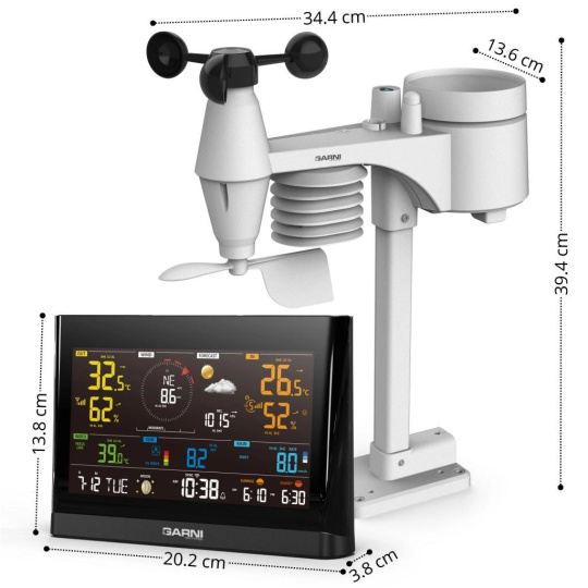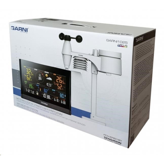 Wi-Fi meteorologická stanica model GARNI 1025 Arcus 2GEN s integrovaným bezdrôtovým čidlom 7-v-1, ktorá je vybavená mnohými funkciami zhromažďuje presné a podrobné údaje o počasí. Integrované bezdrôtové čidlo pracuje na frekvencii 868 MHz a meria vonkajšiu teplotu a relatívnu vlhkosť, rýchlosť a smer vetru, dažďové zrážky, barometrický tlak, UV index a intenzitu slnečného žiarenia. Výrobok používa vysoko presné švajčiarske čidlá SENSIRION a umožňuje kalibráciu niektorých meteorologických veličín.