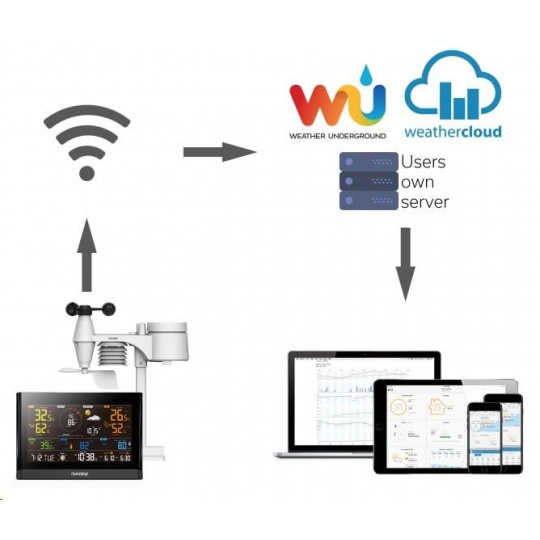Hlavná jednotka je vybavená vysokorýchlostnými procesormi, ktoré analyzujú namerané hodnoty meteorologických veličín a tieto pomocou miestnej Wi-Fi siete v reálnom čase nahrávajú na zvolený server/servery Weather Underground a Weathercloud, prípadne na vlastný server používateľa, alebo na server PocasiMeteo.cz. Prenos dát je možné na všetky servery súčasne.