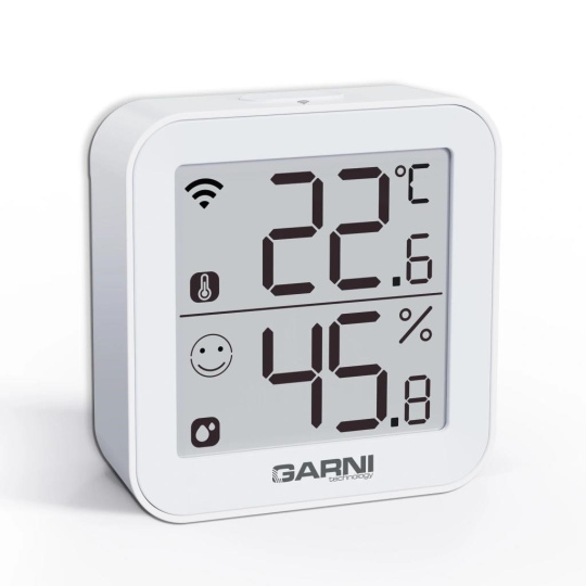 Chytrý vnútorný digitálny teplomer s vlhkomerom model GARNI 158THT má zabudovaný Wi-Fi modula prostredníctvom svojho chytrého systému je kompatibilný s platformou Tuya IOT. Pomocou aplikácie Tuya Smart môžete sledovať vnútornú teplotu a relatívnu vlhkosť, prehliadať históriu záznamov, nastavovať alarmy pre dané veličiny, spúšťať pokročilé funkcie za pomoci nameraných hodnôt a odoslať namerané údaje na email v Excel súbore. Je možné ho prepojiť s ďalšími produktmi chytré domácnosti, ovládanie potom prebieha cez aplikáciu v mobilnom zariadení. Podporuje integráciu do Google Assistant a Alexa.