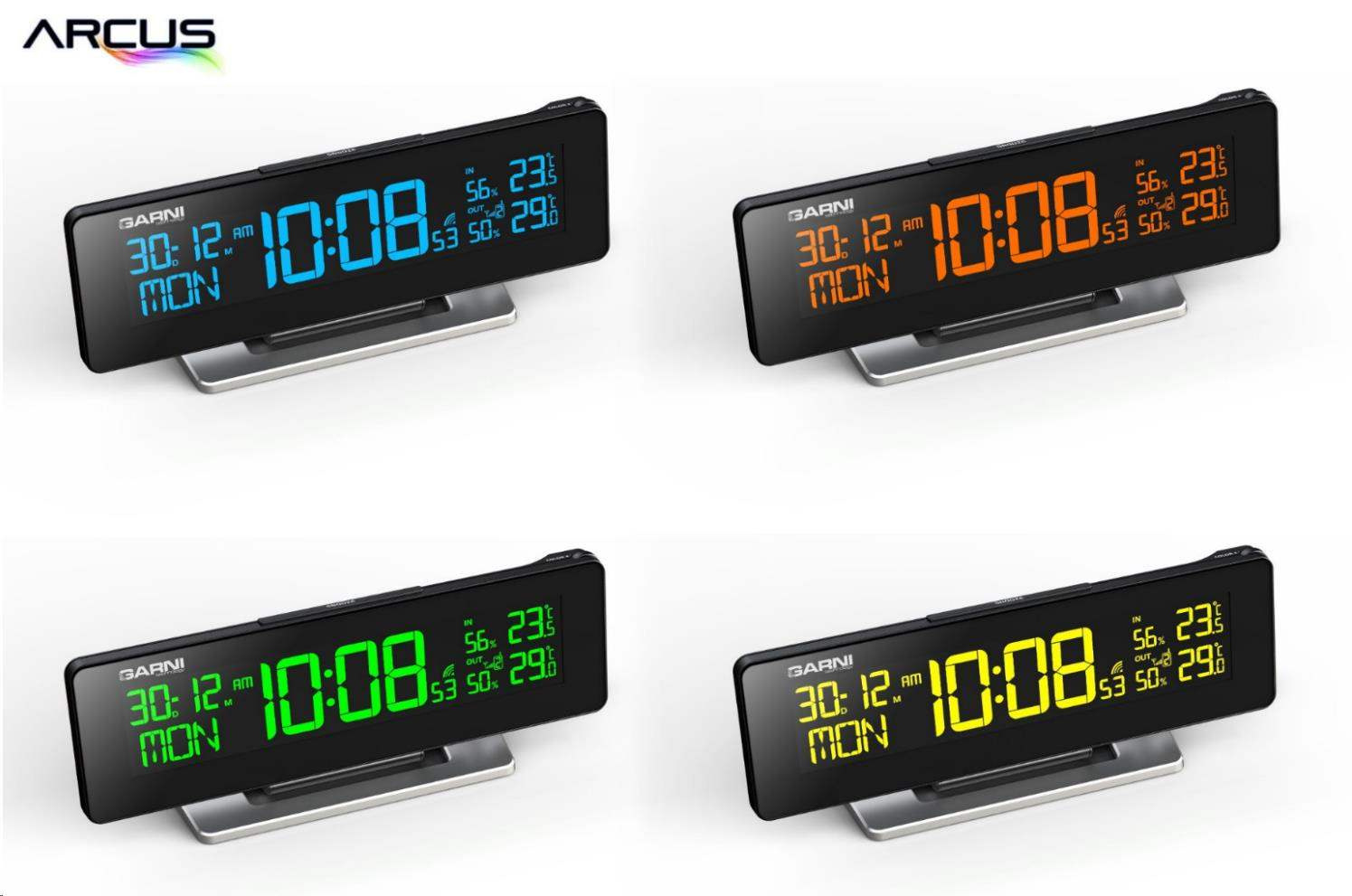 GARNI 185 Arcus - digitální budík s teploměrem a vlhkoměrem