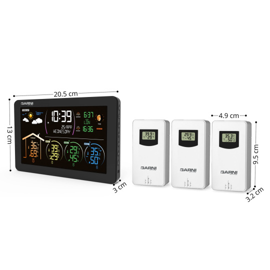 - 3 bezdrôtové senzory GARNI 030H s displejom sú súčasťou balenia