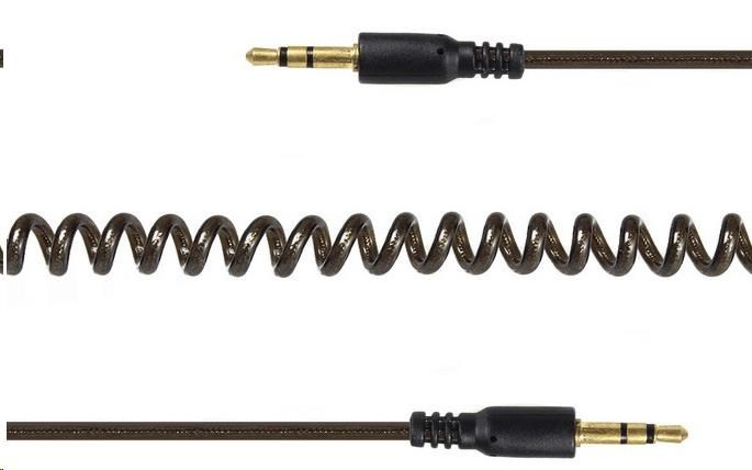 Špirálový audio kábel s dvoma pozlátenými 3.5 mm stereo konektory