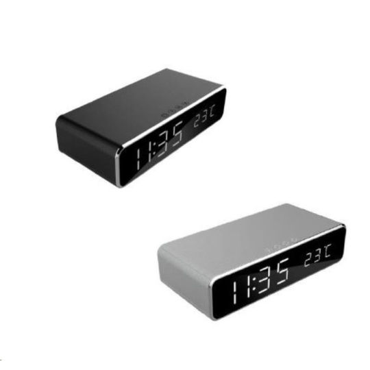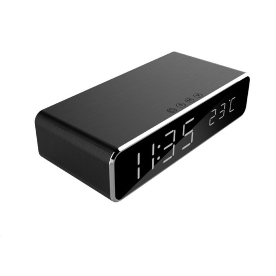 Digitálny budík GEMBIRD s funkciou bezdrôtového nabíjania, čierny