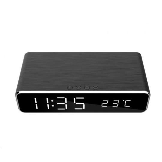 Digitálny budík GEMBIRD s funkciou bezdrôtového nabíjania, čierny