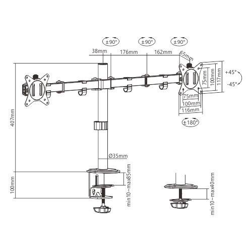 • Stolný držiak monitoru s dvojitým ramenom monitoru