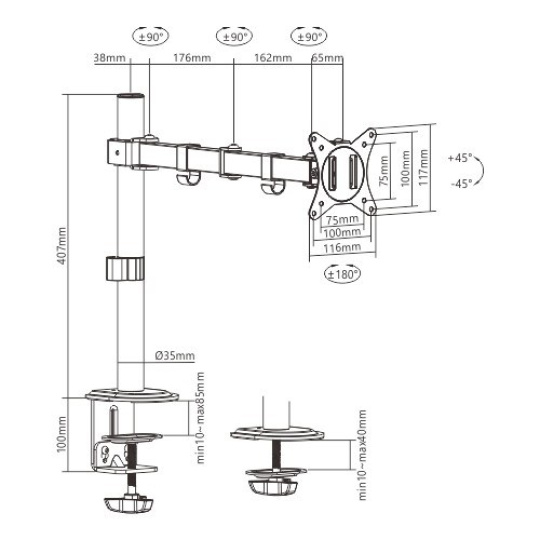 - Stolový držiak monitora s jedným ramenom monitora