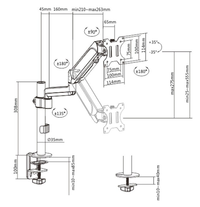 - Odolné nastaviteľné plynové pružiny vhodné pre monitory 1 - 9 kg