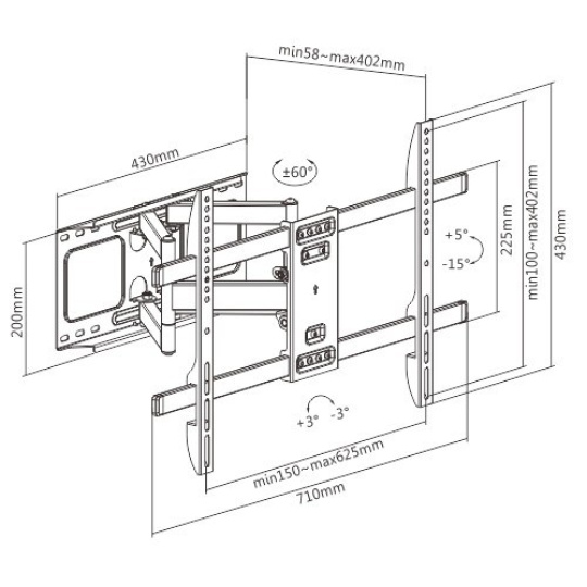 - Vzdialenosť od steny: 58 - 402 mm