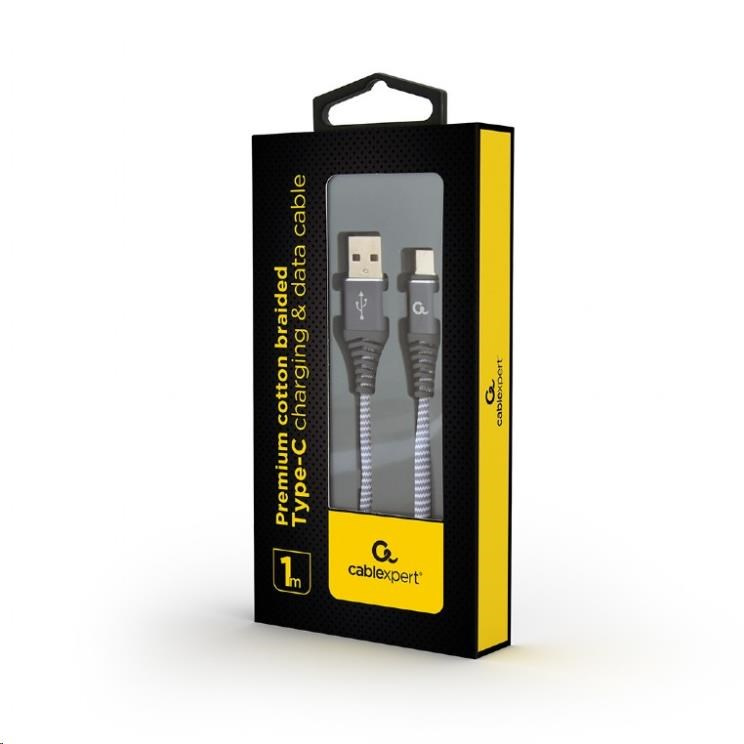 GEMBIRD CABLEXPERT USB 2.0 Kábel AM na typ C (AM/CM), 1 m, opletený, bielo-strieborný, blister, PREMIUM KVALITA