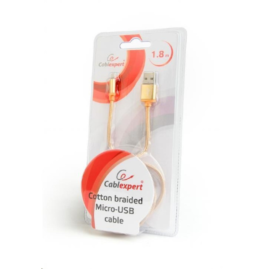 GEMBIRD Kábel CABLEXPERT USB A samec/Micro B samec 2.0, 1,8 m, opletené, zlaté, blister