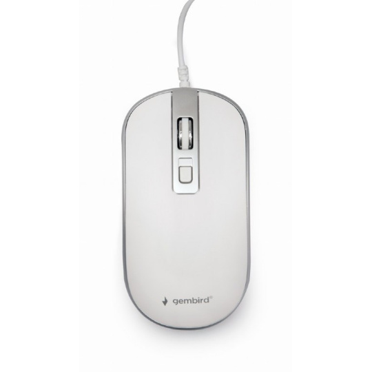 GEMBIRD myš MUS-4B-06-WS, drátová, optická, USB, bílá/stříbrná