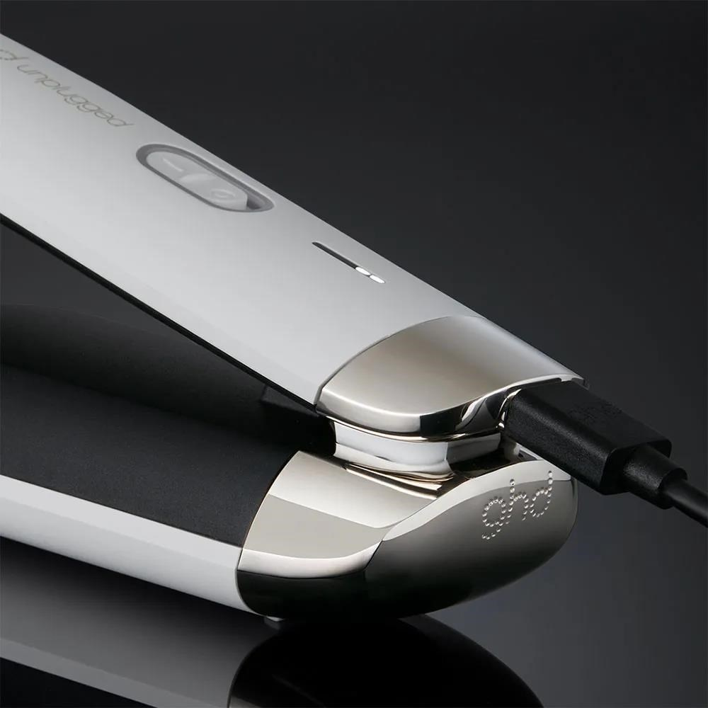 GHD Unplugged žehlička na vlasy, bezdrátová, USB-C, automatické vypnutí, bílá