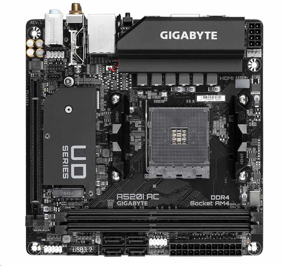 GIGABYTE MB Sc AM4 A520I AC, AMD A520, 2xDDR4, 1xDP, 2xHDMI, WI-FI, Mini-ITX