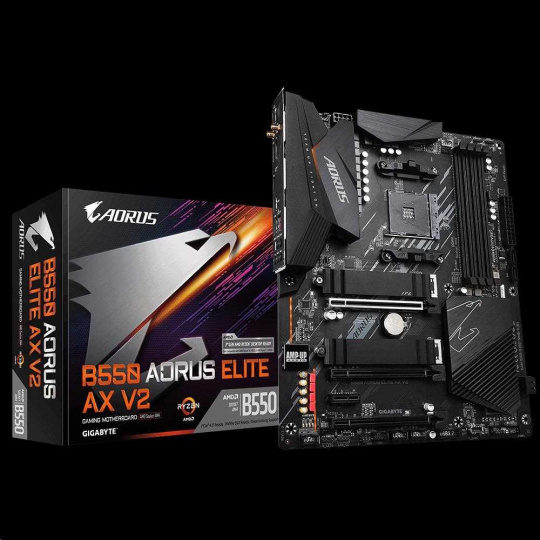 AMD B550 AORUS Motherboard with 12+2 Phases Digital Twin Power Design, Enlarged Surface Heatsinks, Dual PCIe 4.0/3.0 x4 M.2 with Dual Thermal Guards, AMD WiFi 6E 802.11ax, 2.5GbE LAN, Front USB Type-C™, RGB FUSION 2.0, Q-Flash Plus