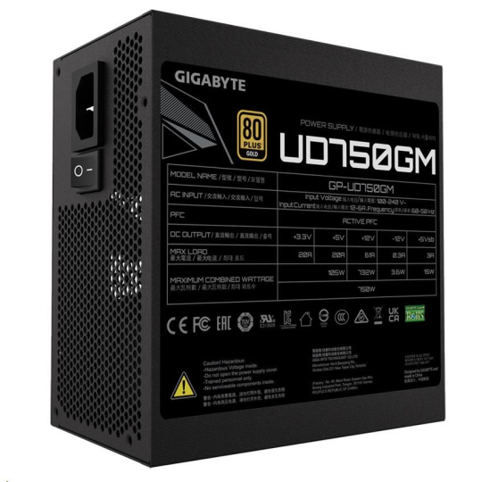 Napájací zdroj GIGABYTE UD750GM, 750W, 80+ Gold, 120mm ventilátor