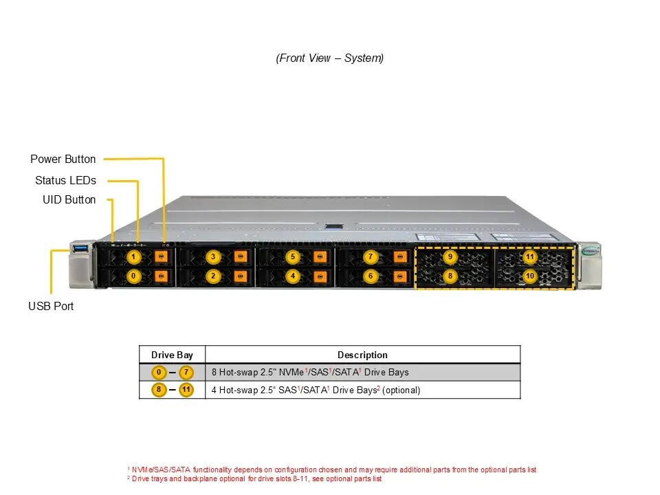 | Úložisko | Až 12x 2.5" NVMe, SATA alebo SAS disky |
