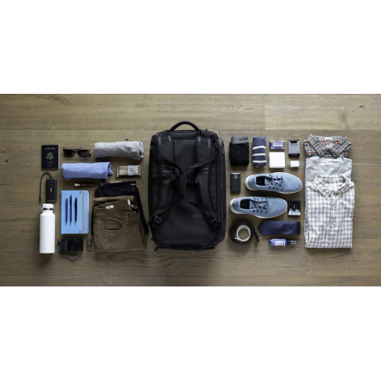 Taška sa dá ľahko prenášať, pretože ponúka niekoľko spôsobov nosenia. Držiak na popruhoch vám umožní držať tašku ako bežnú batožinu. Tieto pásky sa môžu zasunúť a namiesto nich môžete využiť integrované batohové popruhy. Ak vymeníte držiak za batoh, jedinečný dizajn eliminuje akékoľvek voľne visiace popruhy a zabezpečuje čisté línie a nulové nebezpečenstvo zakopnutia. Ak tašku nesiete ako batoh, je možné pripojiť bedrový pás a zvýšiť stabilitu, keď šliape po skalnatom teréne alebo potrebujete ďalší zabezpečovací prvok v preplnených centrách miest. Taška ponúka tiež preklopné upevňovacie poutko, ktoré vám umožní nasunúť cestovnú tašku 30L na rukoväť kufru a prejsť s ňou cez letisko na kolieskach, bez namáhania ramien alebo chrbta.