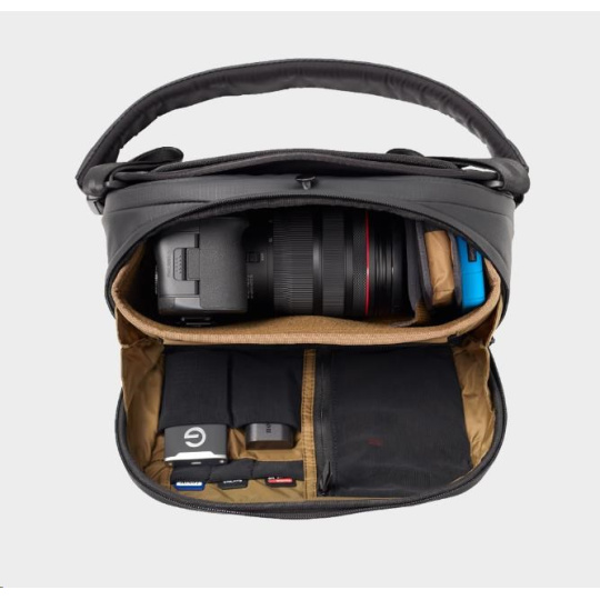 Vďaka rovnakým pevným a vodoodpudivým materiálom ako naše brašna McKinnon 25L, má Sling 8L dostatok priestoru na pohodlné uloženie bezzrkadlovky alebo malej DSLR s výkonom. Otvor je vystužený pevnou, drôtovou konštrukciou pre rýchly prístup a dokonalú viditeľnosť. Zaujme rýchloupínací systém, vďaka ktorému bude prístup k vášmu vybaveniu hračka. Na vnútornej strane dvierok je elastická sieťovaná kapsa na zips a menšie kapsy, určené na pamäťové karty a batérie do fotoaparátu.