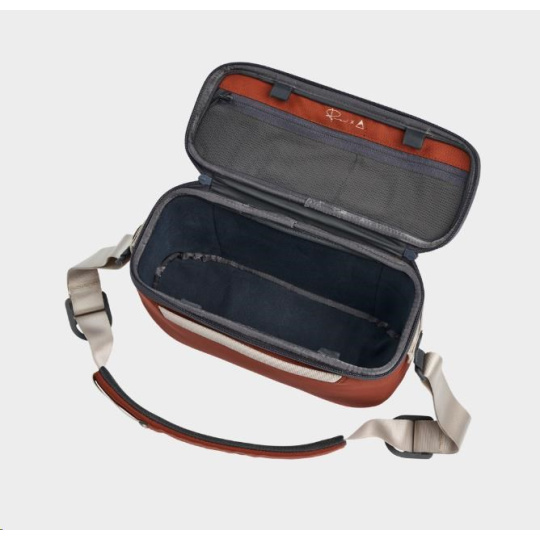 Odolný kovový rám zabezpečuje, že si taška zachová svoj tvar, a vnútro z materiálu Nylex pevne drží deliaci suchý zips. Inovatívne priehradky vo tvaru harmoniky, niektoré s pridanou policou, ďalej maximalizujú priestor. Tento záväzok je kombináciou funkčnosti a remeselného spracovania na mieru fotografom.