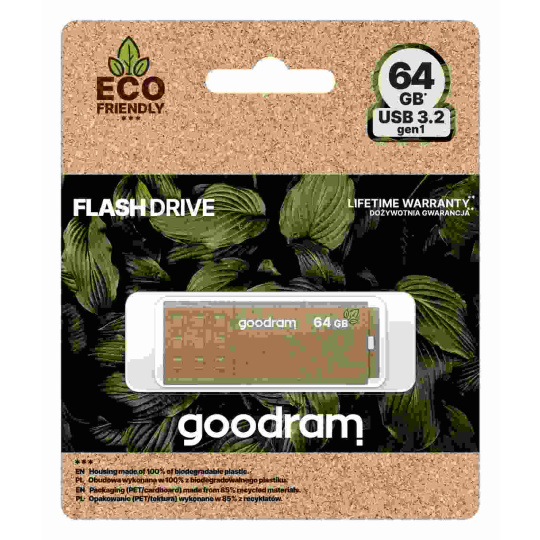 Eco Friendly je nový model pamäťového zariadenia USB z rady UME, ktorý bol úplne navrhnutý a vyrobený v Poľsku. Jeho hlavnou vlastnosťou, ktorá ho odlišuje od ostatných možností dostupných na trhu, je puzdro vyrobené zo 100% biologicky rozložiteľných materiálov, ktoré sa rozkladajú v kompostovacích podmienkach.