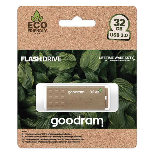 USB flash disk UME Eco Friendly je k dispozícii s kapacitou 32 GB. Použité komponenty umožňujú rýchlosti čítania až 60 MB/s a zápisu až 20 MB/s. Rovnako ako všetky ostatné USB flash disky GOODRAM aj na UME Eco Friendly sa vzťahuje doživotná záruka výrobcu. Najvyššia kvalita = všetky USB Flash disky GOODRAM sú vyrábané s vysoko kvalitnými komponentmi a prechádzajú viackolovými testami kvality, než putujú do maloobchodných predajní. Oddelenie kontroly kvality zabezpečuje, že každý USB je dokonale pripravený na mnoho rokov používania, a preto našim používateľom garantujeme doživotnú záruku.