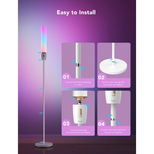Govee Floor Lamp ponúka milióny farieb a 64 prednastavených scénových režimov v aplikácii Govee Home. Preskúmajte DIY režim a vytvorte si paletu priamo pre vás a váš interiér. Vďaka aplikácii môžete scény automatizovať a nastaviť aj časový rozvrh.