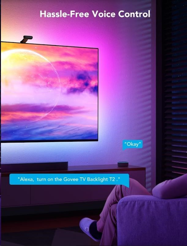Vytvorte si ideálnu filmovú alebo hernú atmosféru pomocou jednoduchých hlasových príkazov. Svetlá sú kompatibilné s asistentmi Alexa, Google Assistant a Siri. WiFi modul je zabudovaný v kamere, iba kamera je pripojená k ovládaciemu boxu. Teraz môžete Govee DreamView zapnúť/vypnúť, upraviť úroveň jasu alebo zmeniť ich farbu pomocou hlasových príkazov z pohodlia svojej pohovky alebo postele. Ovládanie svetiel je možné aj cez ovládaciu jednotku Control Box alebo cez aplikáciu na smartfóne alebo tablete.