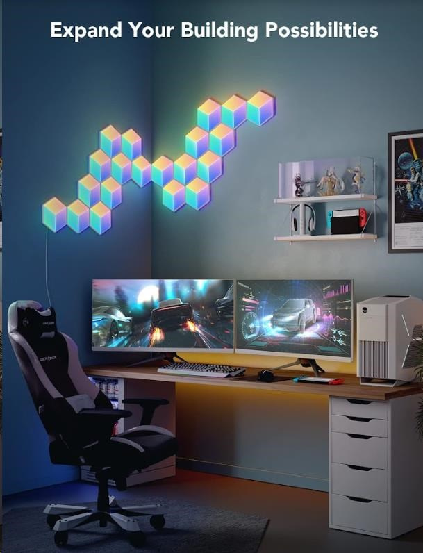 Tí, ktorí majú radi viac farieb, si zamilujú funkciu segmentového ovládania farieb, ktorú umožňuje technológia RGBIC. Prispôsobte si farbu každej sekcie 3D panelu podľa seba a vytvorte tak jedinečné osvetlenie, ktoré bude presne podľa vašich predstáv, vkusu a nálady. Každý panel má 3 časti na zobrazenie farby a efektov, ktoré môžu vytvoriť plastický 3D obraz.