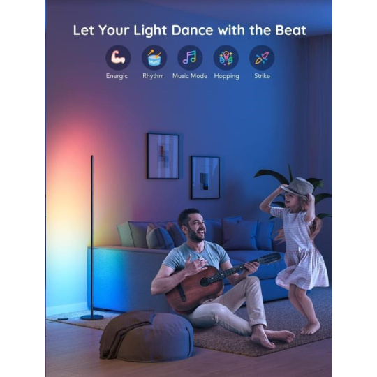 Govee Smart Corner Floor Lamp ponúka farebnú paletu 16 miliónov farieb a zároveň 64 rôznych farebných režimov pre nastavenie dokonalého osvetlenia pre každú príležitosť s intenzitou 1-100%. Technológia RGBIC dokonca umožňuje zobraziť na svetelnom paneli súčasne aj mix farieb. Môže sa tiež pochváliť živostnosťou až 50.000 hodín.