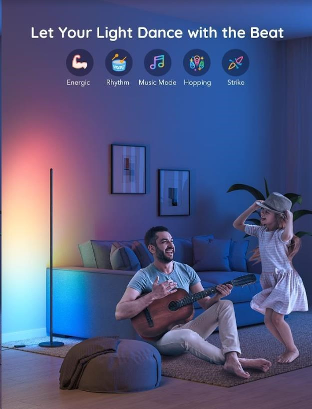 Govee Smart Corner Floor Lamp ponúka farebnú paletu 16 miliónov farieb a zároveň 64 rôznych farebných režimov pre nastavenie dokonalého osvetlenia pre každú príležitosť s intenzitou 1-100%. Technológia RGBIC dokonca umožňuje zobraziť na svetelnom paneli súčasne aj mix farieb. Môže sa tiež pochváliť živostnosťou až 50.000 hodín.