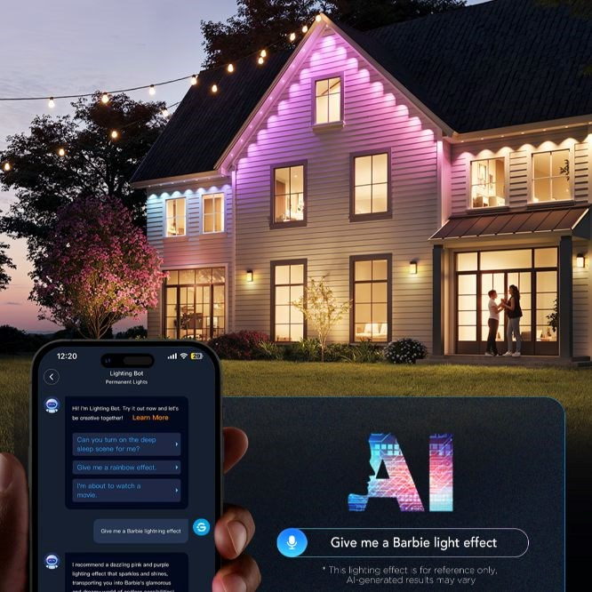 Trvalé svetlá na dom boli navrhnuté pre maximálny efekt s minimálnym úsilím. Jednoduchosť ovládania zabezpečí, že svoj čas môžete tráviť s blízkymi, a nie s technológiou. 16 miliónov farieb, 100 scén, DIY režim pre vlastné návrhy, a navyše AI generované scény podľa vašich príkazov